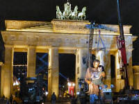 Anläßlich des 20-jährigen Jubiläums des Mauerfalls fand in Berlin ein Theaterspektakel der ganz besonderen Art statt - ein Märchen mitten in den Straßen der Stadt, dargestellt von zwei übergroßen Marionetten.