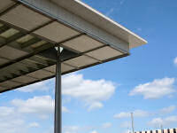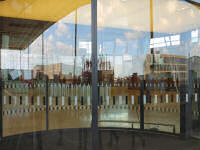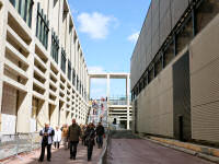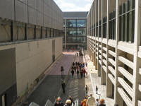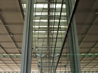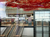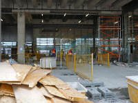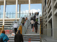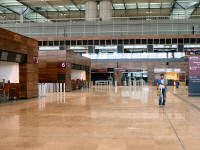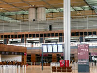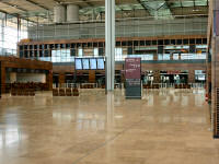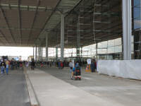Einer der Höhepunkte des Flughafenfests war der Rundgang ums Terminal – im wahrsten Sinne des Wortes: Ein Besuch im Terminal selbst war nicht möglich. Doch geöffnete Türen auf der Vorfahrtebene gewährten zumindest Einblicke in die gewaltige Halle. Die Baustellen im Abfertigungsbereich und den Gates, welche einen maßgeblichen Anteil an der Verschiebung der Eröffnung des BER tragen, blieben dabei jedoch außer Sicht.