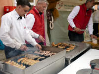 Apfel-Koriander, Lachs-Spinat, Apfel-Walnuß – das sind recht ungewöhnliche Zutaten für eine Bratwurst. Und doch sind sie alle überraschend schmackhaft. Letztere mit kleinen Nußstückchen im Brät gewann als „Die Nussige“ einen der Preise (ein Schelm, wer aufgrund schlechter Akustik aus der Ferne nur „Die Nuttige“ verstand …), ebenso wie die bereits im Vorfeld vielfach beworbene Apfel-Koriander-Wurst.
