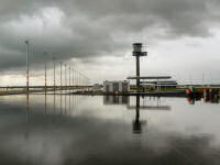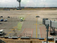 Vor Beginn der ersten Welle war noch Zeit für eine ausgiebige Runde über den Flughafen. Zwar spielte das Wetter nur bedingt mit – es gab immer wieder z.T. heftige Schauer –, doch auch unter solchen Witterungsverhältnissen ist eine Baustellenrundfahrt spannend und bisweilen auch für sehr schöne, kontrastreiche Fotomotive gut. Immerhin sieht man dabei aus nächster Nähe Bereiche, die später im regulären Flugbetrieb für Besucher absolut tabu sind, u.a. das Vorfeld am Hauptpier, die östliche Feuerwache, Tower, westliche Wache, Hangars, Radarturm und etliche weitere Betriebsgebäude. Auf dem Rückweg zum Pier fuhren wir auch an dem brachliegenden und für künftige Terminalerweiterungen vorgesehenen Gelände vorbei – da ist noch eine Menge Platz für einen Ausbau.