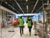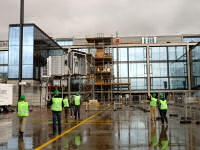Bis zur geplanten Eröffnung am 3. Juni 2012 gibt es noch jede Menge zu tun. Zwar ist in vielen Teilen schon klar erkennbar, in welche Richtung die Innengestaltung und technische Ausstattung gehen wird, doch praktisch überall in den Hauptbereichen und den Piers klaffen große Löcher in Wand- und Deckenverkleidungen, Unmengen offener Kabel hängen herum, inmitten von Baustaub liegen palettenweise Bau- und Ausstattungsmaterialien. Andere Bereiche befinden sich noch komplett im Rohbau und sind mit Gerüsten zugestellt.