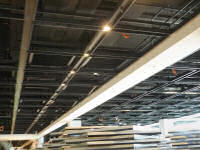 Durch die noch immer in weiten Teilen offene Baustelle waren auch viele interessante Einblicke hinter die Kulissen möglich. So hingen insbesondere im Hauptpier dutzendfach Deckenpaneele herunter, welche allesamt von Rohren durchzogen und an die Klimaanlage angeschlossen sind. An vielen anderen Stellen waren hinter der noch offenen Wandverkleidung die zahlreichen Anschlüsse für die Fußbodenkühlung(!) erkennbar (Vorlauftemperatur: 16°C).