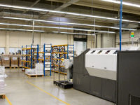 Nach der Anmeldung wurden wir aufgeteilt in kleinere Gruppen zu je rund 10 Personen und von einer Mitarbeiterin durch die Druckerei geführt. Nach einer kleinen Vorstellung der Arbeit und den Produkten von Laserline sowie einem Abstecher ins Großraumbüro gelangten wir in die Druckhalle mit ihrem umfangreichen Maschinenpark.
