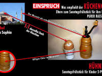 Inzwischen eskaliert der Streit, denn die Tugendwächter haben weitere Verstöße ausgemacht: Auch ein sonntägliches Frühstücksei ist offenbar durchsetzt von Religionsfeindlichkeit und Fremdenhaß, wie das bereits vorab durchgesickerte neue Protestplakat der Türkischen Kulturgemeinde beweist.