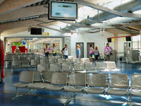 An vier Schaltern konnten wir nun einchecken. Unsere Bordkarten waren sogar mit unseren echten Namen versehen, allerdings stimmte auch hier wieder die Flugnummer nicht. Leider fiel mir das erst später auf – eine Reklamation wäre sicher interessant geworden.