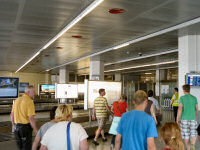 Wir fuhren an den Gates entlang ums gesamte Terminal herum. Als wir die Nordseite des sechseckigen Hauptterminals passierten, rollte parallel zu uns gerade die Jordanische Maschine an den Start. Wir fuhren weiter zum Terminal C. Ein dortiger Flughafenmitarbeiter erkundigte sich telefonisch, was mit uns geschehen sollte. Es schien keiner so recht zu wissen, wo wir Unverletzten denn nun hinzubringen seien. Nach kurzer Zeit machten beide Busse kehrt und wir fuhren erneut an den Gates entlang zurück zum Terminal D.