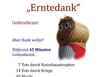 27. Oktober 2014Es wird Herbst, die Blätter fallen und die kirchliche Scheinheiligkeit steht in voller Blüte. Es ist die Zeit der Erntedankgottesdienste. Millionen Gläubige danken ihrem Gott für reiche Ernte und einen wohlig satten Bauch. Doch dieser Dank ist ebenso ungerechtfertigt wie verlogen.